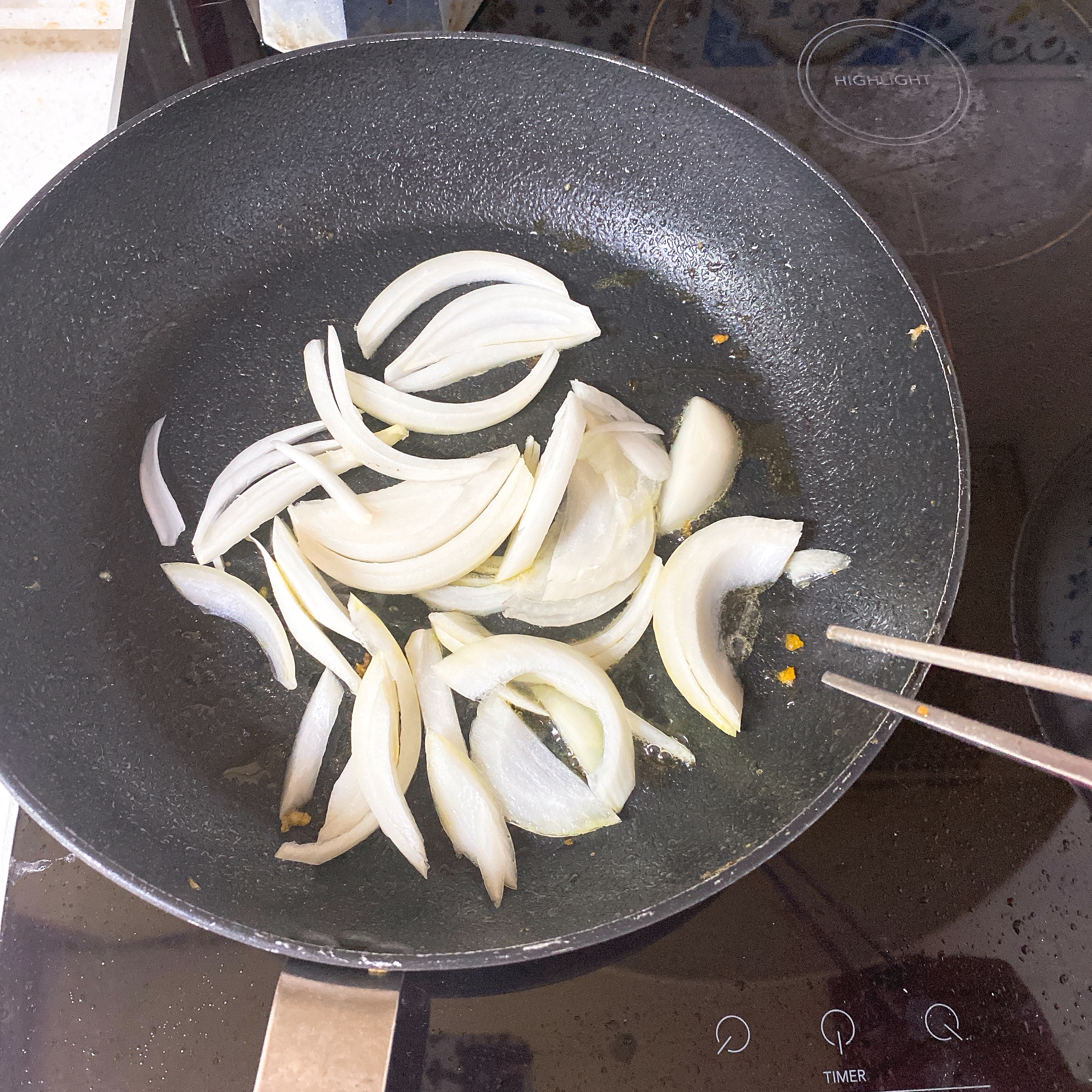 4. 팬에 양파를 볶다가 간장한스푼 설탕1/2~1스푼 넣어서 익혀준다