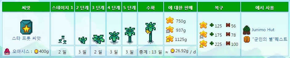 개당가격이 작물중 가장비쌈 가공하여파는것 추천 (스타후르츠와인 3600골드)