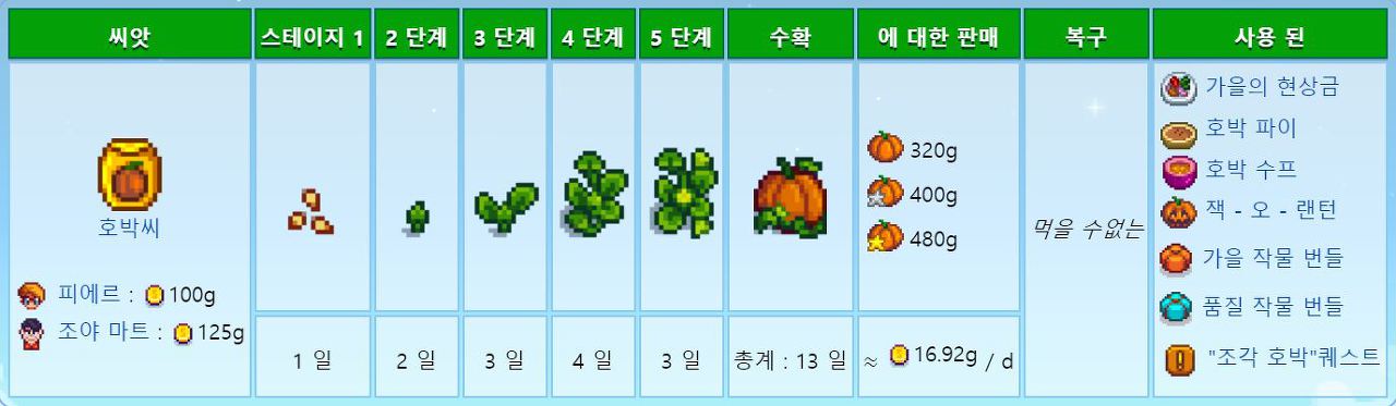 거대작물이 가능한 호박 개당가가비싸서 가공추천 (호박주스 1080골드)