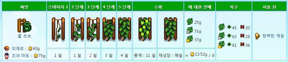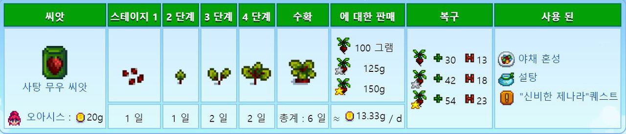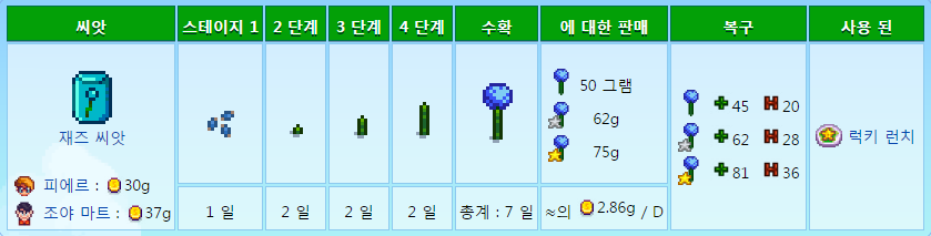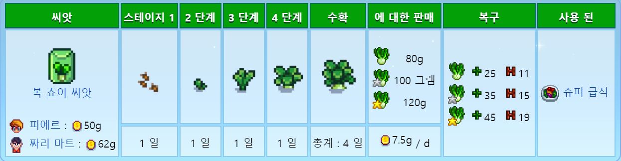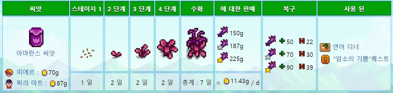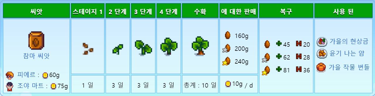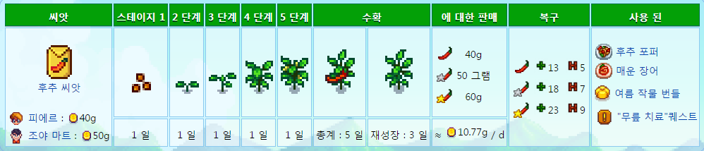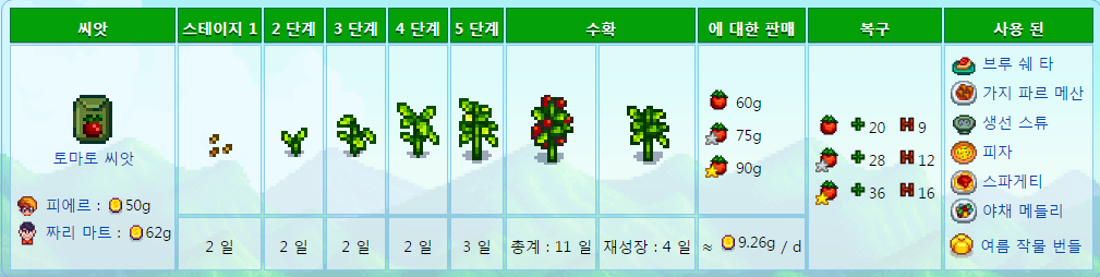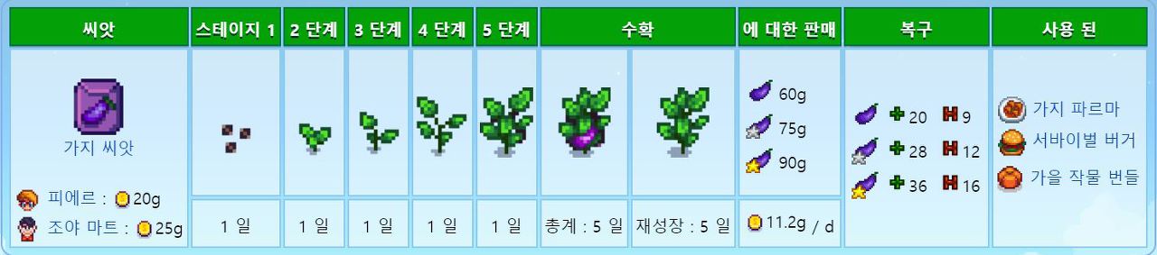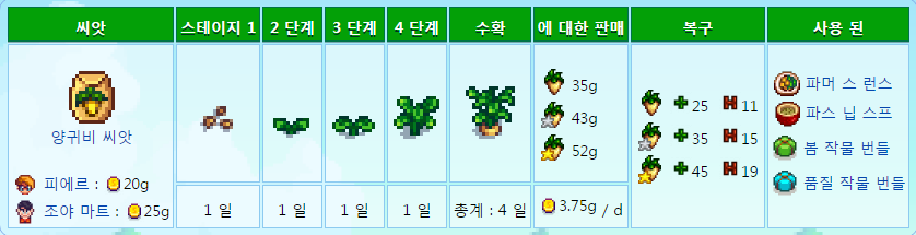 페니를 제외하고 주민모두 좋아하는 작물이므호 호감도작물로도 좋다
