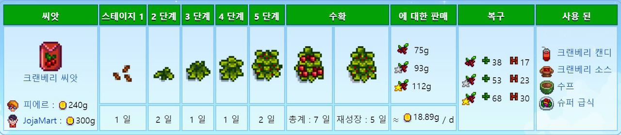 가을작물치곤 빨리 자라는편이고 효율도좋음 가공추천 (크랜베리와인 585골드)