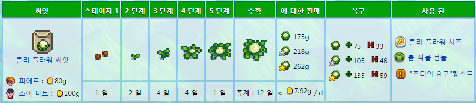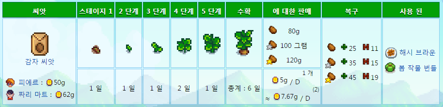 싸구려작물이고 많은주민들이 좋아해서 호감도작하기 좋다