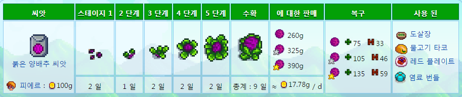 2년차부터 피에르가 판매하고 가공추천 (붉은양배추주스 878골드)