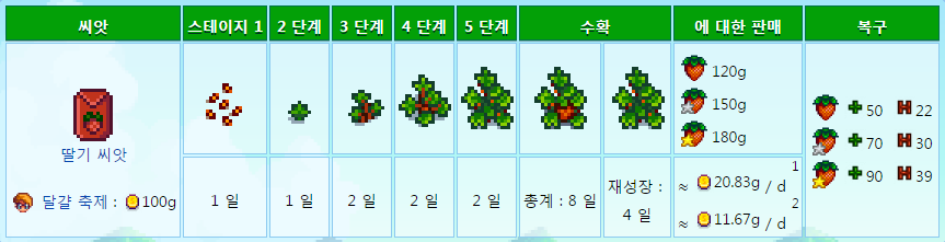 2년차 봄 시작때 심어서 가공하여파는것 추천 (딸기와인 540골드)