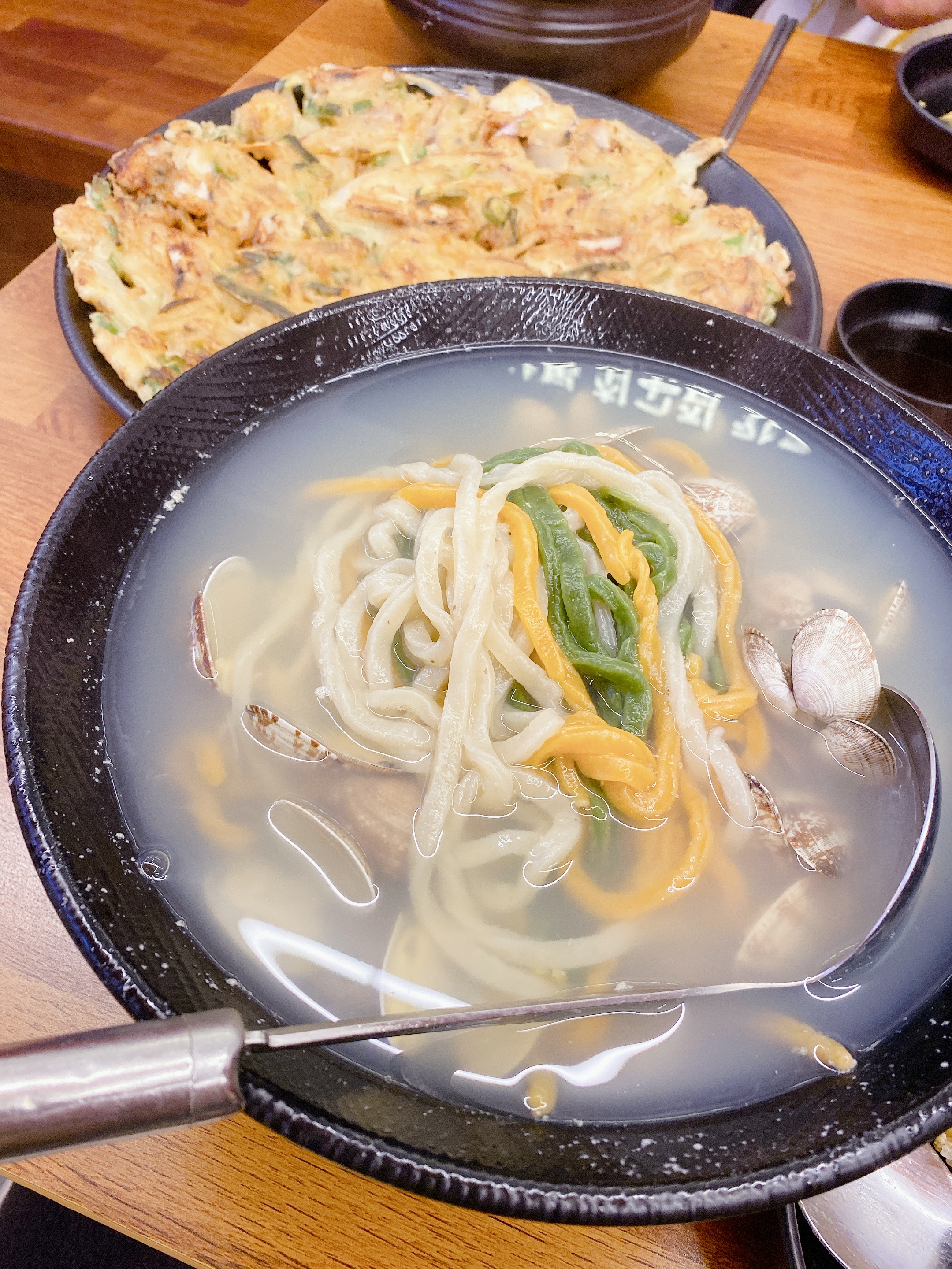 해물칼국수 한대접에 빠삭 해물파전 반접시