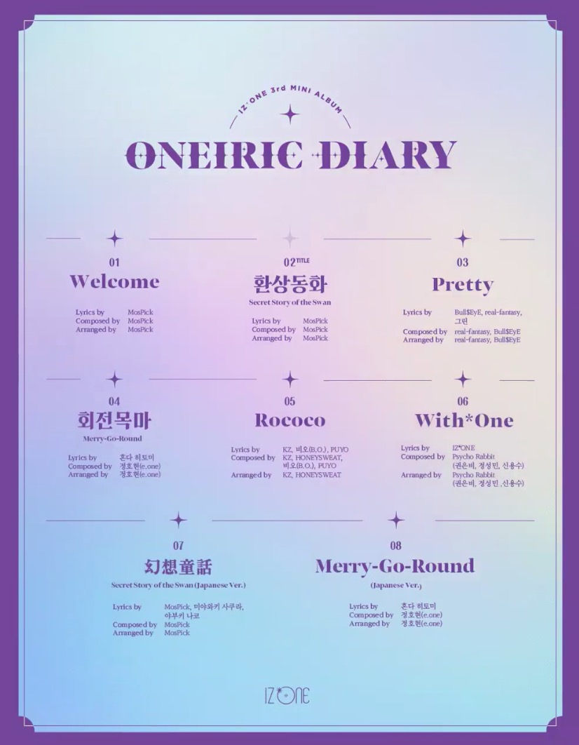 아이즈원(IZ*ONE) 세번째 미니 앨범 Oneiric Diary (幻想日記) TRACK LIST & PHOTO : 트위터 이모지 본문